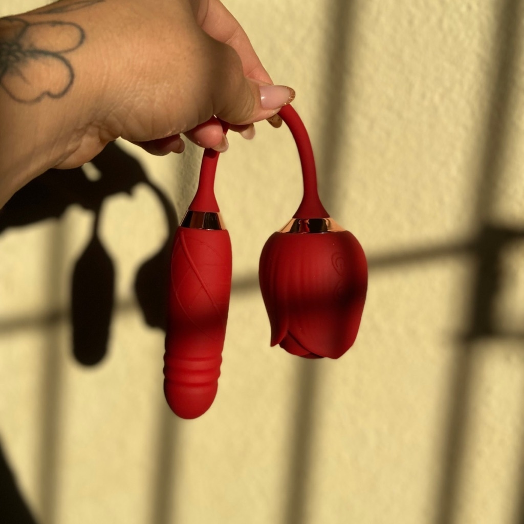 Toda mulher merece rosas, e simmm esse tipo de rosa, um vibramor 2 em 1 que suga e faz um movimento e vai e vem na hora da penetração. São 10 modos de vibração sobe e desce e de sucção, recarregável super macio e funciona de forma independente, ou seja, você pode usar tanto a parte de sugar ou a parte de penetração.